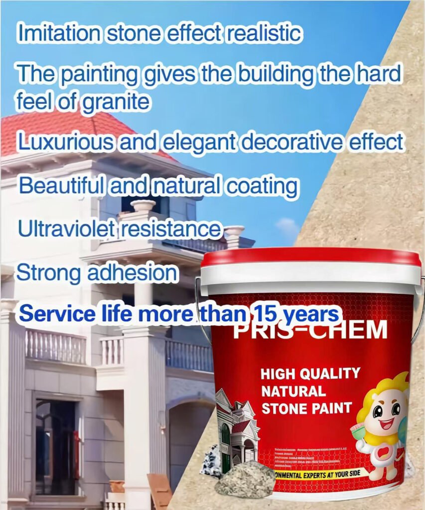 Product Features | Environmental protection, non-toxic, natural mineral tone, no color paste, imitation stone effect Lifelike The coating is beautiful and natural, and has excellent UV resistance. After spraying, the building has the hard feeling of granite and the luxurious and elegant decoration effect Strong adhesion,permanent,not easy to fade,long and beautiful,service life of more than 15 years |